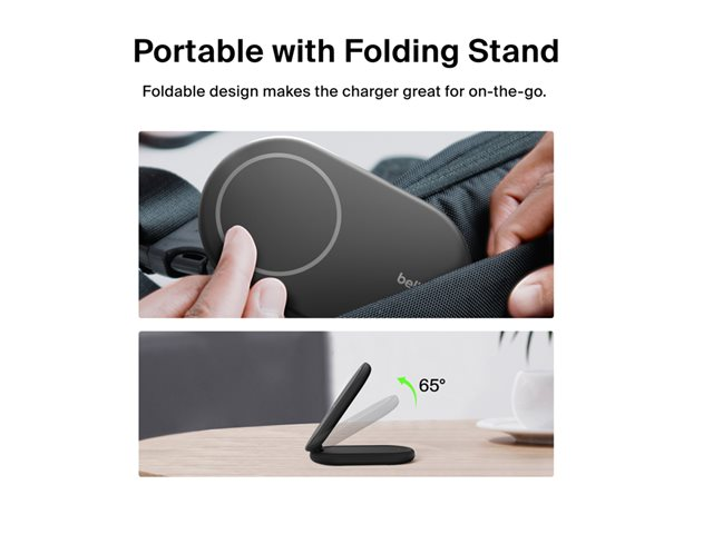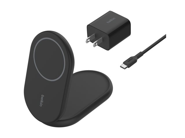 magnetisk, hopfällbar, med Qi2 + växelströmsadapter - 15 Watt - 3 A - Fast Charge, Strömmatning 3.1 - svart