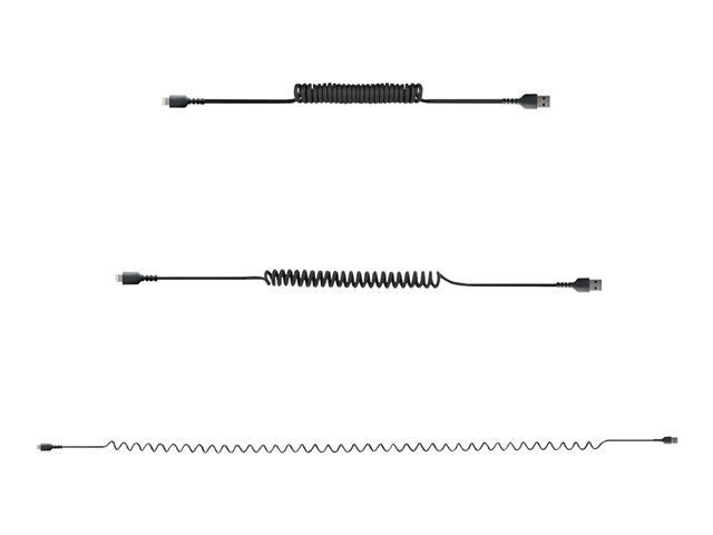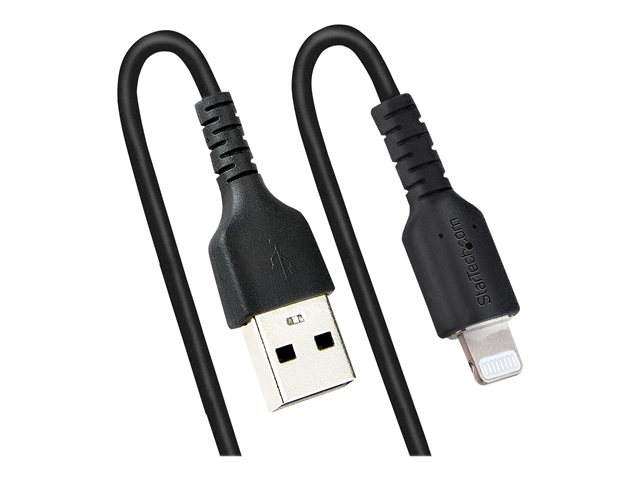 Produktbeskrivning StarTech.com 1 m USB till Lightning-kabel, MFi-certifierad, iPhone-spiralladdarkabel, svart, TPE-mantel med slitstark aramidfiber, kraftig Lightning-spiralkabel - Lightning-kabel - Lightning / USB - 1 m Kabel Lightning-kabel - Lightning / USB American Wire Gauge (AWG) 22/32 Kabellängd 1 m Färg Svart Kontaktdon USB - hane Kontakt (andra änden) Lightning - hane Egenskaper Lindad Tillverkarens garanti 2 års garanti -