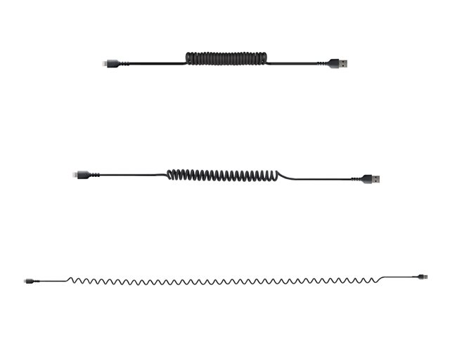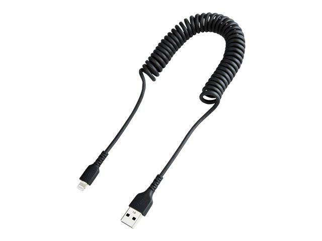 StarTech.com 1 m USB till Lightning-kabel, MFi-certifierad, iPhone-spiralladdarkabel, svart, TPE-mantel med slitstark aramidfiber, kraftig Lightning-spiralkabel