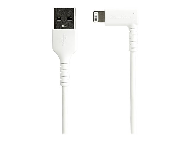 Produktbeskrivning StarTech.com 2m tålig USB-A till Blixtkabel - vitt 90° högervinkad, robust aramidfiber USB typ A till Blixtuppladdning/synkron sladd - Apple MFi-certifierad - iPhone - Lightning-kabel - Lightning / USB - 2 m Kabel Lightning-kabel - Lightning / USB Teknik Dubbelt skärmad Kabellängd 2 m Färg Vit Kontaktdon Lightning - hane - vinklad Kontakt (andra änden) USB - hane Egenskaper Synkronisering och laddning, klammer Tillverkarens garanti 2 års garanti -