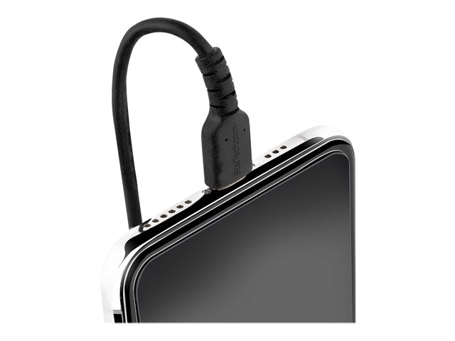 StarTech.com 50 cm USB till Lightning-kabel, MFi-certifierad, iPhone-laddarkabel, svart, TPE-mantel med slitstark aramidfiber, kraftig Lightning-spiralkabel