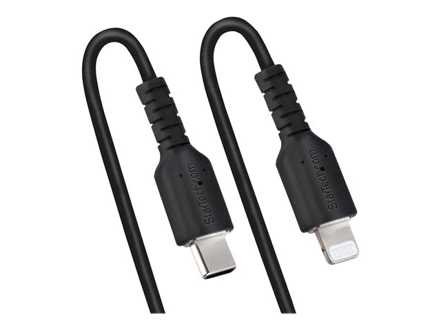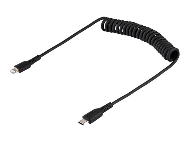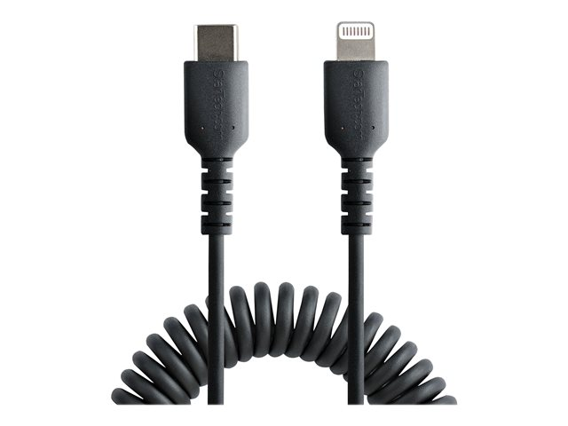 StarTech.com USB C till Lightning-kabel 50 cm, MFi-certifierad, iPhone-spiralladdarkabel, svart, TPE-mantel med slitstark aramidfiber, kraftig Lightning-spiralkabel