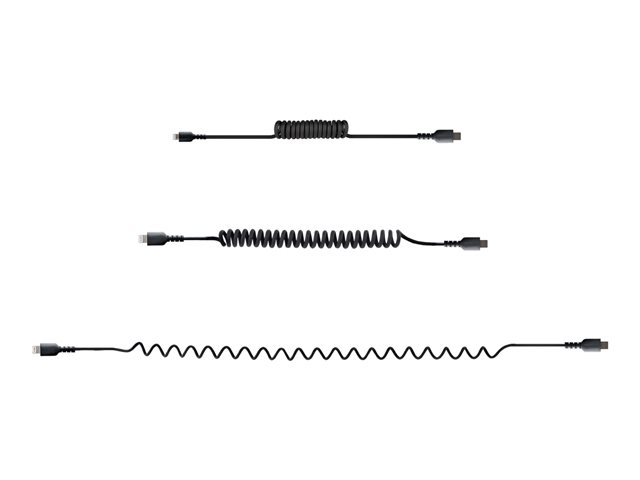 Produktbeskrivning StarTech.com USB C till Lightning-kabel 50 cm, MFi-certifierad, iPhone-spiralladdarkabel, svart, TPE-mantel med slitstark aramidfiber, kraftig Lightning-spiralkabel - Lightning-kabel - 50 cm Kabel Lightning-kabel American Wire Gauge (AWG) 22/32 Kabellängd 50 cm Färg Svart Kontaktdon USB-C - hane Kontakt (andra änden) Lightning - hane Standarder som följs USB / USB 2.0 Egenskaper Lindad Tillverkarens garanti 2 års garanti -