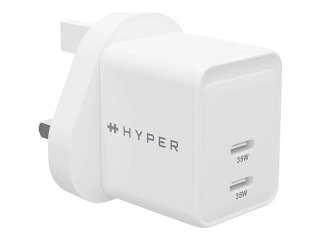 Produktbeskrivning HyperJuice strömadapter - GaN - USB-C - 35 Watt Typ av produkt Strömadapter Utformad för Surfplatta, mobiltelefon, anteckningsbok Dimensioner (BxDxH) 3.5 cm x 7 cm x 10.5 cm Vikt 80 g Färg Vit Lokalisering Storbritannien Typ av utkontakt Total 2: USB-C Snabbladdningsteknik Qualcomm Quick Charge 3.0, Power Delivery 3.0 + PPS Effekt 35 Watt Tillverkarens garanti 2 års garanti -