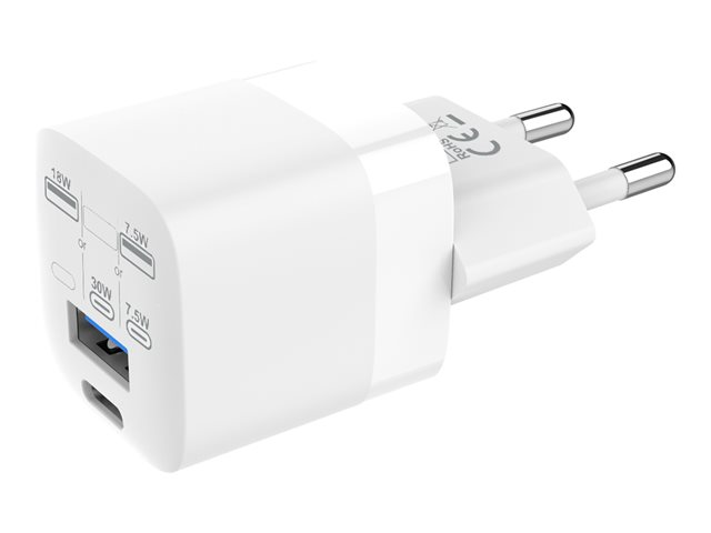 30 Watt - 3 A - QC 3.0 - 2 utdatakontakter (24 pin USB-C, USB) - vit - Europa