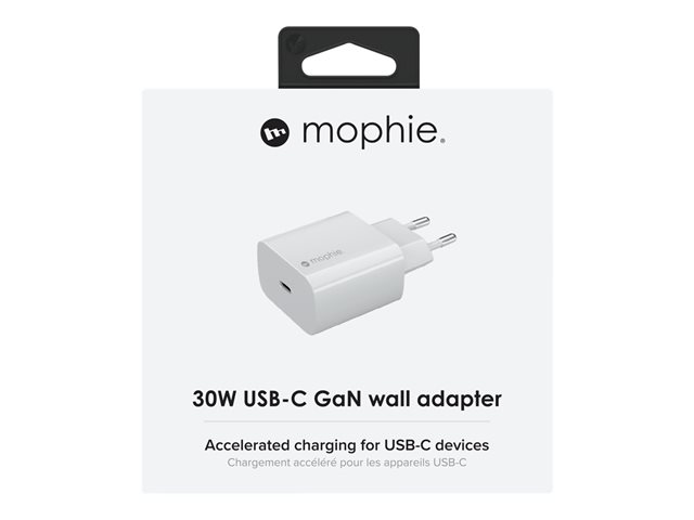 Produktbeskrivning mophie strömadapter - 24 pin USB-C - 30 Watt Typ av produkt Strömadapter Färg Vit Lokalisering EU Typ av utkontakt 24 pin USB-C Snabbladdningsteknik Power Delivery Effekt 30 Watt Tillverkarens garanti 2 års garanti -