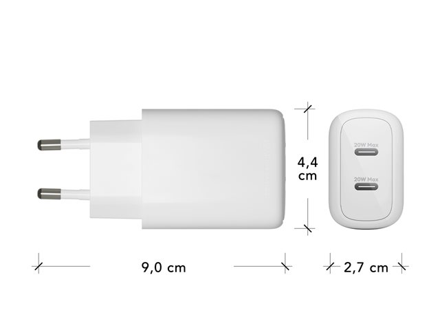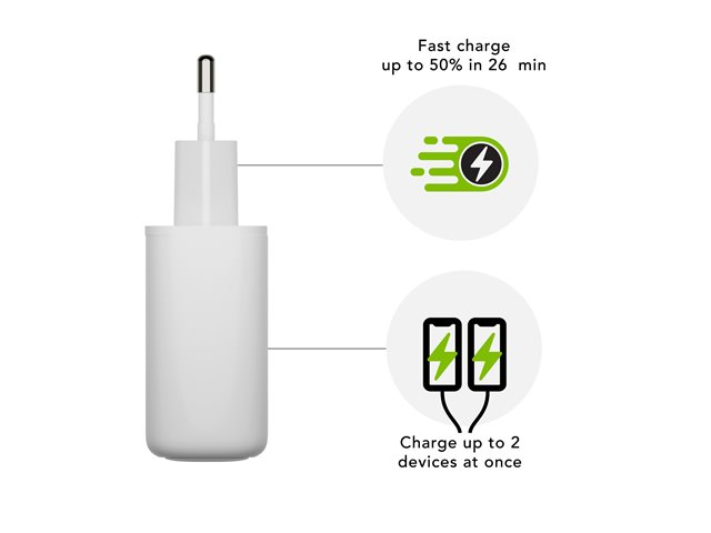 Strömadapter - 20 Watt - 3 A - PD/PPS - 2 utdatakontakter (24 pin USB-C) - vit - Europa