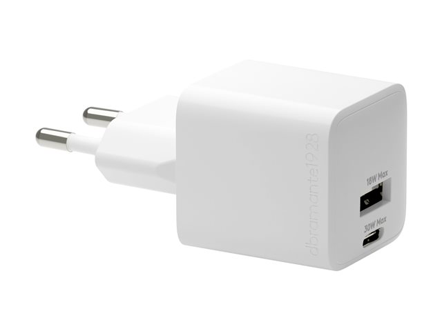 Strömadapter - 30 Watt - PD - 2 utdatakontakter (USB, 24 pin USB-C) - vit - Europa