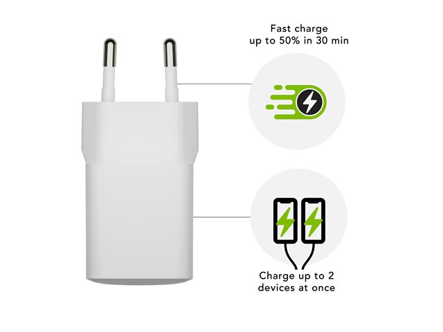 Växelströmsadapter - 4-stifts USB typ A - utmatning - 18 WÅtervunnet produktinnehåll 100 % - tillverkad av återvunnen plast Tillverkarens garanti 2 års garanti -