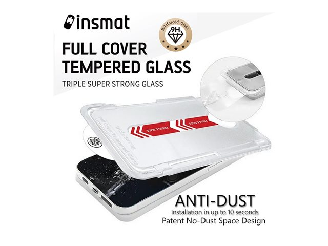 Produktbeskrivning Insmat - skärmskydd för mobiltelefon - lätt och anti-damm, super full täckning Typ av produkt Skärmskydd - glas Avsedd för Mobiltelefon Skydd Smutsavstötande, trippel förstärkt, stöttålig, friktion skydd, dammskydd Beläggning Oleofob Förpacknings innehåll Skärmskydd, våt trasa, torr trasa, No-DUST installation frame Produktmaterial Tempererat glas (9H) Ramfärg Svart Designat för Apple iPhone 15, 16 -