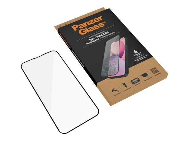 Produktbeskrivning PanzerGlass - skärmskydd för mobiltelefon Typ av produkt Skärmskydd - glas Avsedd för Mobiltelefon Skydd Reptålig, antibakteriell, stötsäkert, stötskydd Beläggning Antimikrobiell Produktmaterial Glas Ramfärg Svart Tillverkarens garanti 30-dagars retur Designat för Apple iPhone 13 mini -
