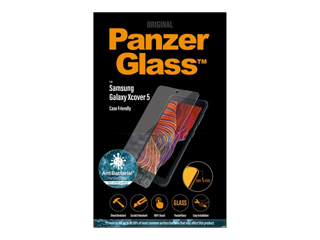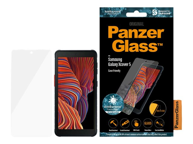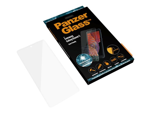 Produktbeskrivning PanzerGlass - skärmskydd för mobiltelefon Typ av produkt Skärmskydd - glas Avsedd för Mobiltelefon Skydd Reptålig, fingeravtrycksresistent, antibakteriell, stötsäkert Beläggning Oleofob Produktmaterial Härdat glas Dimensioner (BxDxH) 6.407 cm x 13.962 cm Grovlek 0.51 mm Vikt 12 g Designat för Samsung Galaxy Xcover 5 -