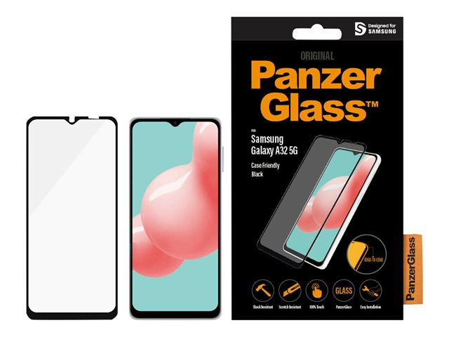 Produktbeskrivning PanzerGlass - skärmskydd för mobiltelefon Typ av produkt Skärmskydd - glas Avsedd för Mobiltelefon Skydd Stötsäkert, reptålig, antibakteriell, fingeravtrycksresistent Beläggning Oleofob, antimikrobiell Produktmaterial Glas Ramfärg Svart Färg CrystalClear Designat för Samsung Galaxy A32 5G -