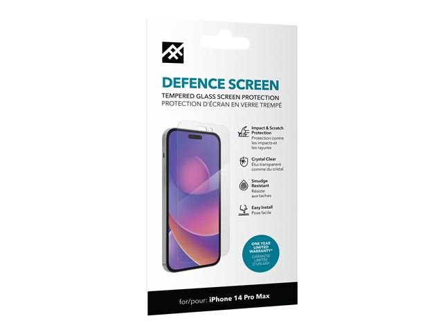 Produktbeskrivning iFrogz Defence - skärmskydd för mobiltelefon Typ av produkt Skärmskydd - glas Avsedd för Mobiltelefon Skydd Stötskydd, repskydd, motstår fingeravtryck Beläggning Fläcktåligt Produktmaterial Härdat glas Tillverkarens garanti 1 års garanti Designat för Apple iPhone 14 Pro Max -