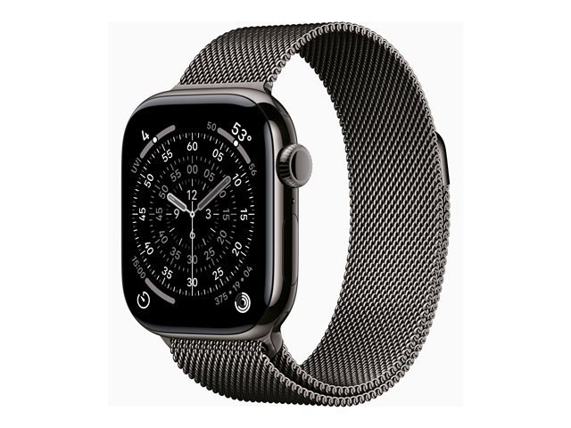 42 mm - skiffer titan - smart klocka med milanesisk loop - nät av rostfritt stål - skiffer - handledsstorlek: 130-200 mm - 64 GB - Bluetooth, LTE, Wi-Fi 4, UWB - 5G - 34.6 g