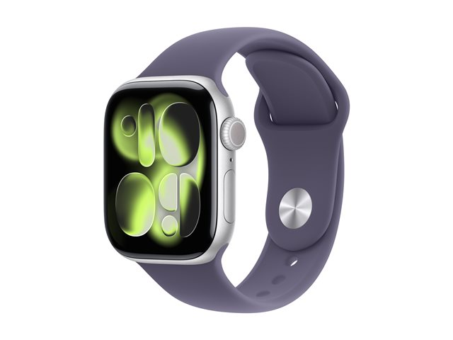Produktbeskrivning Apple Watch Series 11 (GPS) - silveraluminium - smart klocka med sportband - lila dimma - 64 GB Produkttyp Smart klocka Tillverkarens modellnummer A3331 Aktivitet/sport Golf, löpning, simning, skidor, cykling, vandring, promenader, yoga, snowboarding, strength training, elliptisk, multisport, dans, trappgång, pilates, rullstol, intervallträning med hög intensitet (HIIT), utomhusrodd, paddling, roddmaskin, nedkylning, kernträning, tai chi, kickboxning Spårningsdata Distans, tid, brända kalorier, aktivitet, sovaktivitet, hjärtfrekvens, blodsyremättnad, sömnstadier, löptakt, ljudnivå, menstruell cykel, mätvärden för simning, ECG, träningslast, sömnkvalitetspoäng, ägglossningsfasen, steglängd, medvetenhet Anslutning Wi-Fi 4, UWB, Bluetooth Navigering GPS/GLONASS/Galileo/BeiDou/QZSS-mottagare Bildskärm Retina LTPO3 OLED 374 x 446 pixlar - 326 ppi - Ion-X glas - always-on display Processor Apple S10 Lagring 64 GB Operativsystem WatchOS Boett Rektangulär - 42 mm - 100 % återvunnet aluminium Band Lila dimma - sportband - fluoroelastomer - storlek: M/L - utbytbar Betalningsteknik Apple Pay Intelligent assistent Siri Inmatning Pekskärm, sidoknapp, roterande krona, dubbeltryck, handledsvridningsgest Passar handled med omkrets 150-200 mm Aviseringar Kalender, SMS, E-post, appar, hög och låg hjärtfrekvens, oregelbunden rytm, sömnapné-notifikationer, backtrack, hypertoni Funktioner Samtalshantering, Falldetektering, Nödläge SOS, medicinpåminnelse, sömnapnédetektering, hjärtfrekvenszoner, ljusstyrka: 2 000 nits, Stöd för familjeuppstart, Internationella nödsamtal, Kraschdetektering, brusövervakning, snabbladdning, kör träningsbygge, offline-kartor, roaming stöd Värdenhets-OS som stöds iOS Batteri Laddningsbart litiumjon Batteridriftstid Upp till 38 timmar Dimensioner (BxDxH) 36 mm x 9.7 mm x 42 mm Vikt 30.3 g Specifik absorptionshastighet (SAR) 0.11 W/kg (head)