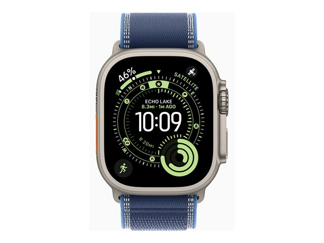 Produktbeskrivning Apple Watch Ultra 3 - naturlig titan - Ja smart klocka med Trail Loop - blå/klarr blå - 64 GB Produkttyp Smart klocka Tillverkarens modellnummer A3281 Aktivitet/sport Golf, löpning, simning, skidor, cykling, vandring, promenader, yoga, snowboarding, strength training, elliptisk, multisport, dans, trappgång, pilates, rullstol, intervallträning med hög intensitet (HIIT), utomhusrodd, paddling, roddmaskin, nedkylning, kernträning, tai chi, kickboxning, snorkeling, dykning Spårningsdata Distans, tid, brända kalorier, aktivitet, sovaktivitet, hjärtfrekvens, blodsyremättnad, sömnstadier, ljudnivå, menstruell cykel, ECG, ägglossningsfasen, medvetenhet, djup, temperatur, takt, elevation, sömnkvalitetspoäng Anslutning LTE, Wi-Fi 4, UWB, Bluetooth, NFC 5G Navigering GPS/GLONASS/Galileo/BeiDou/QZSS-mottagare Bildskärm Retina LTPO3 OLED 422 x 514 pixlar - 326 ppi - safirglass - always-on display Processor Apple S10 Lagring 64 GB Operativsystem WatchOS Boett Rektangulär - 49 mm - titan (grad 5) Ja Band Blå/klarr blå - Trail Loop - nylonväv - storlek: S/M - utbytbar Betalningsteknik Apple Pay Intelligent assistent Siri Inmatning Pekskärm, anpassningsbar åtgärdsknapp, sidoknapp, dubbeltryck, handledsvridningsgest Passar handled med omkrets 130-180 mm Aviseringar Kalender, SMS, E-post, appar, hög och låg hjärtfrekvens, oregelbunden rytm, sömnapné-notifikationer, backtrack, hypertoni Funktioner Sirena, ljusstyrka: 3000 nits, Nödläge SOS, Internationella nödsamtal, Kraschdetektering, Falldetektering, senaste nödsamtals tillgänglighet vägpunkt, medicinpåminnelse, samtalshantering, lagra och spela upp musik, brusövervakning, Kompassvägpunkt, snabbladdning, spårdetektering, hjärtfrekvenszoner, navigering med dubbla band Värdenhets-OS som stöds iOS Batteri Laddningsbart litiumjon Batteridriftstid Upp till 42 timmar Dimensioner (BxDxH) 44 mm x 12 mm x 49 mm Vikt 61.6 g Tillverkarens garanti 1 års garanti -