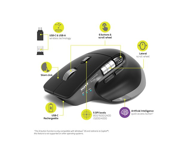 Produktbeskrivning PORT Connect Professional ULTIMATE - mus - laddningsbar - 2.4 GHz, Bluetooth Typ av enhet Mus Anslutningsteknik Trådlös - 2.4 GHz, Bluetooth Dimensioner (BxDxH) 8.5 cm x 12.3 cm x 5 cm Vikt 148 g Trådlös mottagare Trådlös USB-mottagare Teknik för rörelsedetektering Optisk Antal knappar 6 Rörelseupplösning 4000 dpi Prestanda Realtime sensitivity switching 800/1600/2400/3200/4000 dpi Egenskaper Scrollhjul, tyst klick, sidorullningshjul, FreeWheel technology Operativsystem erfordras Microsoft Windows, Apple MacOS, Android, Google Chrome OS Tillverkarens garanti 3 års garanti -