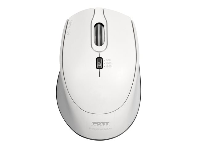 Produktbeskrivning PORT Connect SILENT - mus - 2.4 GHz - vit Typ av enhet Mus Anslutningsteknik Trådlös - 2.4 GHz Färg Vit Dimensioner (BxDxH) 6.5 cm x 9.9 cm x 3.7 cm Vikt 58 g Trådlös mottagare USB/USB-C trådlösa mottagare Teknik för rörelsedetektering Optisk Rörelseupplösning 1600 dpi Prestanda Realtidssensitivitetsomkoppling 800/1200/1600 dpi Egenskaper Tysta nycklar, scrollhjul Operativsystem erfordras Microsoft Windows, Apple MacOS, Android, Google Chrome OS Tillverkarens garanti 2 års garanti -