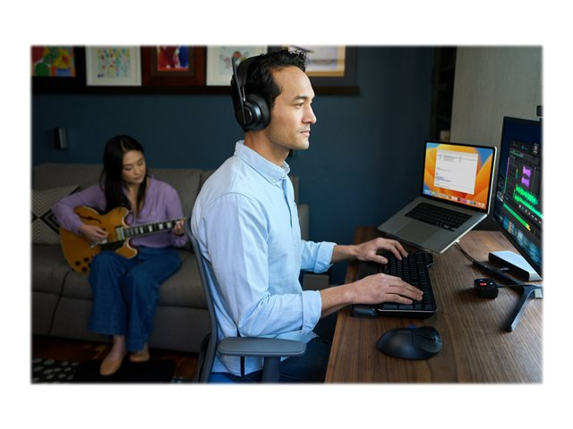 Styrkula - ergonomisk - optisk - 7 knappar - trådlös - 2.4 GHz, Bluetooth - trådlös USB-mottagare
