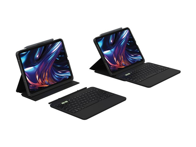 Produktbeskrivning ZAGG Pro Keys 2 - tangentbord och foliefodral (folioomslag) - QWERTY - Nordisk Inmatningsenhet Typ av enhet Tangentbord och foliefodral Bakgrundsbelyst 7 färger Gränssnitt Bluetooth Inmatningsenhet Löstagbart tangentbord Anslutningsteknik Trådlös Lokalisering och layout QWERTY Nordisk Vikt 226.8 g Tillverkarens garanti 2 års garanti Designat för Apple 11-inch iPad Pro Wi-Fi, Wi-Fi + Cellular -
