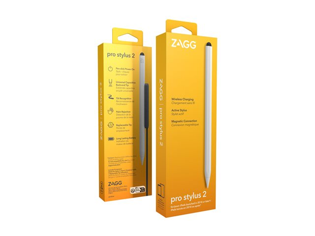 Produktbeskrivning ZAGG Pro Stylus 2 - aktiv penna - vit Typ av enhet Aktiv penna Färg Vit Dimensioner (BxDxH) 7.2 cm x 2.7 cm x 21 cm Vikt 109 g Egenskaper LED-indikator, Palm Rejection-teknik, lutningskänslig, magnetiskt fästområde, utbytbar spets, automatisk avslagning, trådlös laddning Tillverkarens garanti 2 års garanti -