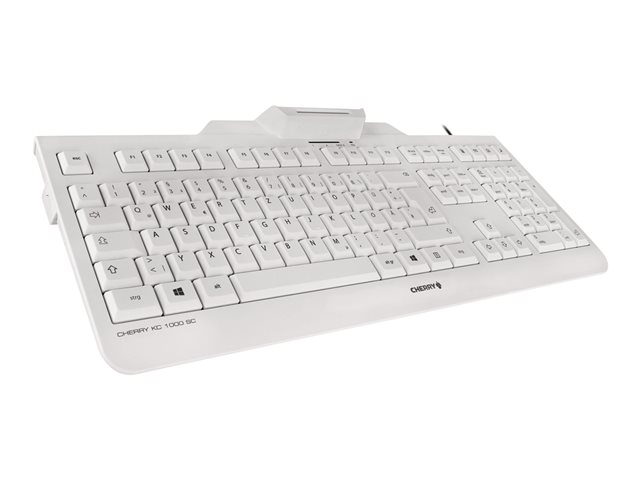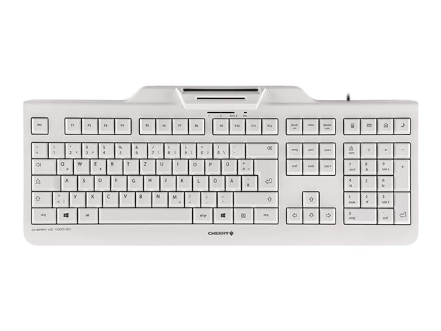 Produktbeskrivning CHERRY KC 1000 SC - tangentbord - hela norden - blekgrå Inmatningsenhet Typ av enhet Tangentbord Gränssnitt USB Anslutningsteknik Kabelansluten Lokalisering och layout Hela norden Antal tangenter 105 Antal snabbtangenter 4 Säkerhetsenheter Smartkortsläsare Numeriskt tangentbord Ja Egenskaper Cherry LPK-teknik Nyckellåstyp CHERRY LPK Färg Blekgrå Dimensioner (BxDxH) 45.8 cm x 18.8 cm x 4.6 cm Vikt 840 g Miljöstandarder Blue Angel Tillverkarens garanti 2 års garanti -