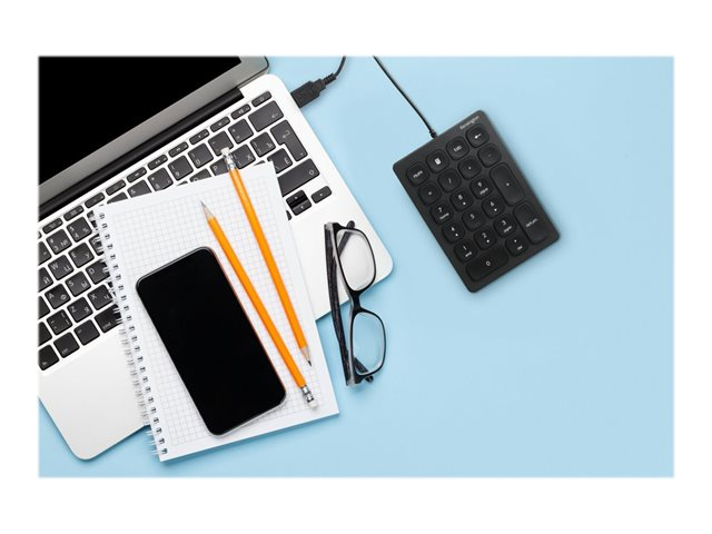 Produktbeskrivning Kensington - tangentsats Inmatningsenhet Typ av enhet Tangentsats Gränssnitt USB Anslutningsteknik Kabelansluten Antal tangenter 21 Tillverkarens garanti 3 års garanti -