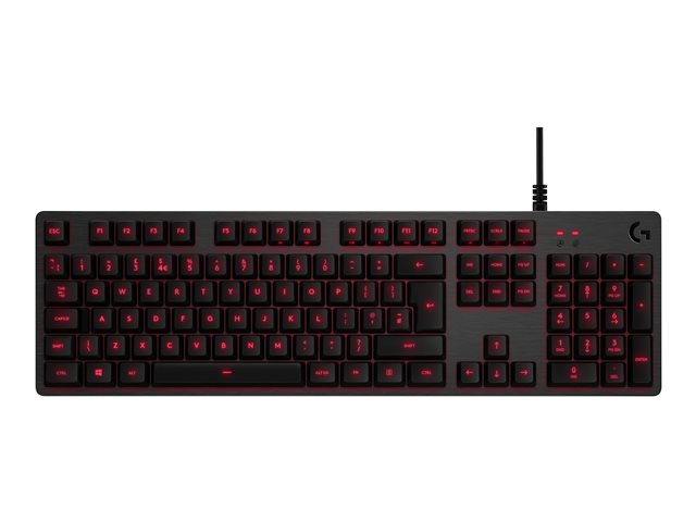 Produktbeskrivning Logitech Gaming G413 - tangentbord - Nordisk - kol Inmatningsenhet Typ av enhet Tangentbord Bakgrundsbelyst Röd Gränssnitt USB Anslutningsteknik Kabelansluten Lokalisering och layout Nordisk Antal tangenter 108 Snabbtangentsfunktion Multimedia, bakgrundsbelysningskontroll, spellägesnyckel Gaming Ja Nyckellåstyp Romer-G Färg Kol Dimensioner (BxDxH) 44.5 cm x 13.2 cm x 3.4 cm Vikt 1.105 kg Tillverkarens garanti 2 års garanti -
