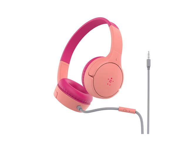 Produktbeskrivning Belkin SoundForm Mini - hörlurar med mikrofon - 3,5 mm kontakt Typ av produkt Hörlurar - kabelansluten - 3,5 mm kontakt Stil Barn Färg Rosa Hörlursmodell På örat Anslutningsteknik Kabelansluten Ljudutgångsläge Stereo Mikrofon På kabel Kontroller Spela/pausa, svara på samtal Tillverkarens garanti 2 års garanti -