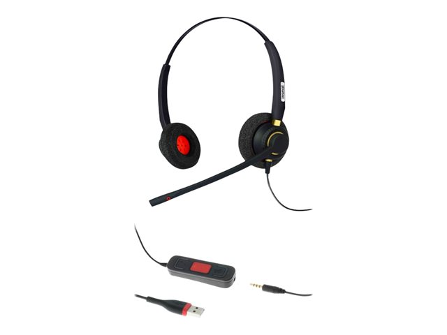Produktbeskrivning Insmat KEVO 320 - headset Typ av produkt Headset - kabelansluten Rekommenderad användning Bärbar elektronik, dator Hörlursmodell På örat Anslutningsteknik Kabelansluten Ljudutgångsläge Stereo Mikrofon Bom Brusreducerande mikrofon Ja -