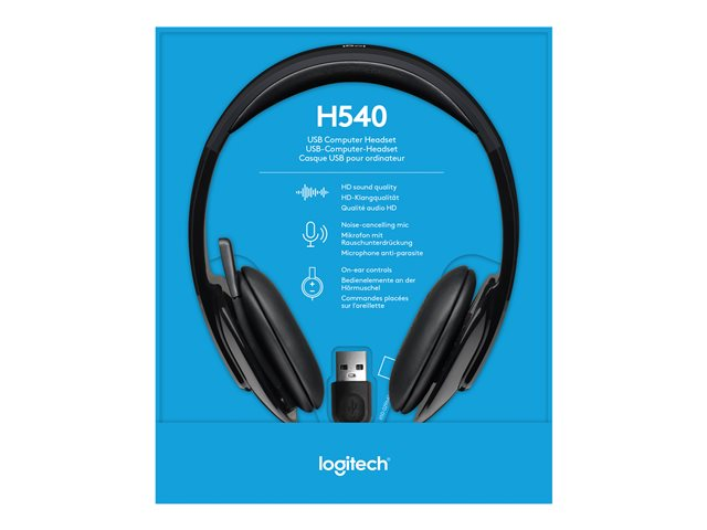 Produktbeskrivning Logitech USB Headset H540 - headset Typ av produkt Headset - kabelansluten Rekommenderad användning Dator Hörlursmodell På örat binaural Anslutningsteknik Kabelansluten Ljudutgångsläge Stereo Ljudspecifikationer Frekvensrespons 20 - 20000 Hz Mikrofon Bom Operativt läge för mikrofon Mono Kontroller Volym Tillverkarens garanti 2 års garanti -