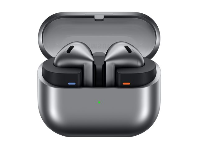 Produktbeskrivning Samsung Galaxy Buds3 - True wireless-hörlurar med mikrofon Typ av produkt True wireless-hörlurar - Bluetooth Rekommenderad användning Bärbar elektronik Ytterligare funktioner 24-bit Hi-Fi audio, SmartThings Find Färg Silver Hörlursmodell Inuti örat Trådlös teknik Bluetooth Hörlursteknik Dynamisk Bluetoothversion Bluetooth 5.4 Ljudeffekter Adaptive EQ, 360 ljud Active Noise Canceling Ja Kontroller Klämstyrning, svepkontroll, röststyrning -