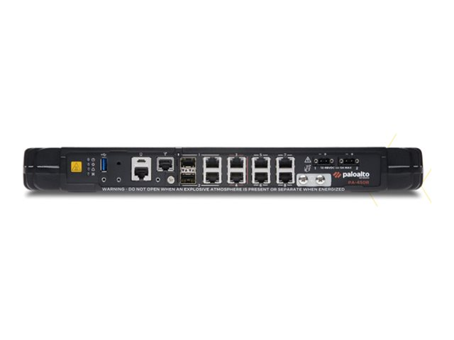Produktbeskrivning Palo Alto Networks PA-450R-5G - säkerhetsfunktion Typ av enhet Säkerhetsfunktion Formfaktor Extern - 1U Hårddisk 128 GB x 1 Datalänkprotokoll Ethernet, Fast Ethernet, Gigabit Ethernet Prestanda Brandväggsgenomströmning (HTTP): 3.2 Gbps