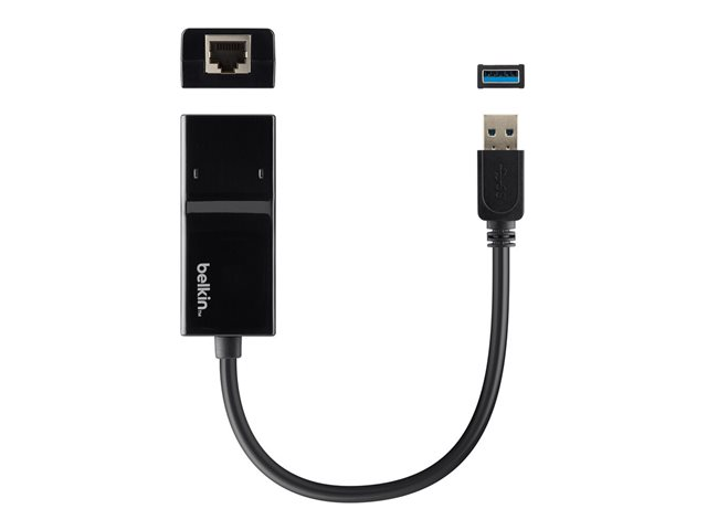 Produktbeskrivning Belkin - nätverksadapter - USB 3.0 - Gigabit Ethernet Typ av enhet Nätverksadapter Formfaktor Extern Gränssnittstyp (buss) SuperSpeed USB 3.0 Portar Gigabit Ethernet Typ av kablage Ethernet 10Base-T, Ethernet 100Base-TX, Ethernet 1000Base-T Datalänkprotokoll 10Mb LAN, 100Mb LAN, 1GbE Dataöverföringshastighet 1 Gbps -