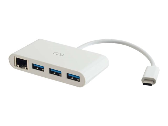 Hub - 3 Ports - Nätverksadapter - USB-C - Gigabit Ethernet x 1 + USB 3.0 x 3 - vit