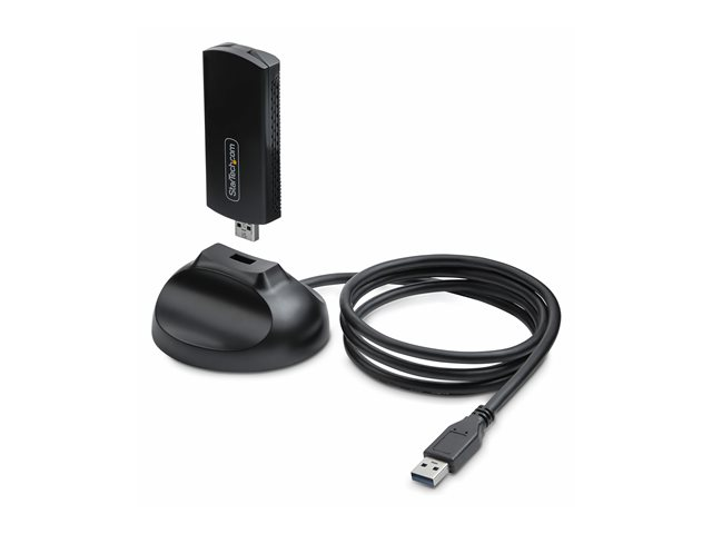 Produktbeskrivning StarTech.com Wi-Fi 6E USB Adapter/Dongle, For Desktop/Laptop PC, Wireless NIC w/Foldable Antenna, WiFi Adapter Supports 802.11 b/g/n/ac/ax, 2.4/5/6 GHz Network Compatible - nätverksadapter - USB 3.0 Typ av enhet Nätverksadapter Formfaktor Extern Gränssnittstyp (buss) SuperSpeed USB 3.0 Dimensioner (BxDxH) 3.7 cm x 9.4 cm x 1.6 cm Vikt 32 g Datalänkprotokoll Wi-Fi 5, Wi-Fi 6E Dataöverföringshastighet 5400 Mbps Prestanda Maximal datahastighet (6 GHz): 2402 Mbps