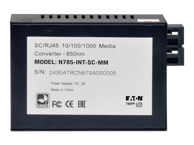 Eaton Tripp Lite Series Gigabit Multimode Fiber to Ethernet Media Converter, 10/100/1000 SC, International Power Supply, 850 nm, 550 m (1,804 ft.)