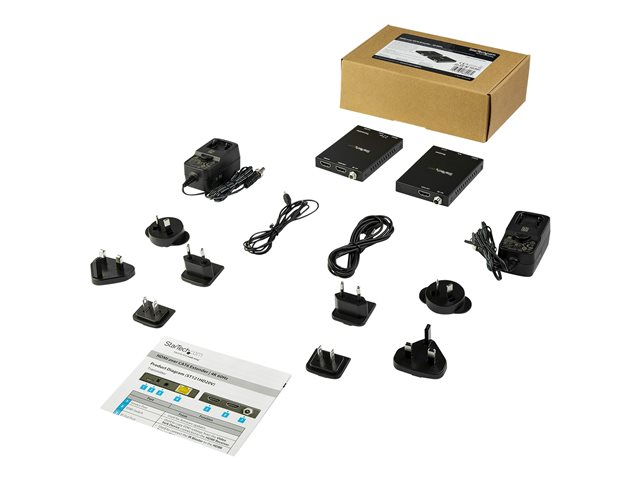 Produktbeskrivning StarTech.com HDMI över CAT6 förlängarsats - 4K 60 Hz - förlängd räckvidd för audio/video - HDMI Typ av enhet Förlängd räckvidd för audio/video Formfaktor Extern Datalänkprotokoll HDMI Överföringsmedium CAT 6 Max överföringsavstånd 50 m Strömtillförsel Växelström 110-240V/likström 12V Vikt 135 g Tillverkarens garanti 2 års garanti -