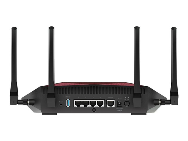 Produktbeskrivning NETGEAR Nighthawk Pro Gaming XR1000 - trådlös router - Wi-Fi 6 - skrivbordsmodell Typ av enhet Trådlös router - 4-ports-switch (inbyggd) Modell Skrivbordsmodell Antal WAN-portar 1 Datalänkprotokoll Ethernet, Fast Ethernet, Gigabit Ethernet, IEEE 802.11b, IEEE 802.11a, IEEE 802.11g, IEEE 802.11n, IEEE 802.11ac, IEEE 802.11ax (Wi-Fi 6) Frekvensband 2,4 GHz/5GHz Nätverks/transportprotokoll IPv6 Intelligent assistent Google Assistant, Alexa Funktioner NAT-stöd, VPN-stöd, SPI, skydd mot DoS-attacker, stöd för DFS, fast programvara kan uppdateras, QoS, ReadySHARE, återställningsknapp, Traffic Control, Beamforming+, Smart Connect, gäståtkomst, Explicit Beamforming, NETGEAR Armor, Röststyrning, 4K UHD-videoströmning, 160MHz bandbreddsstöd, geofäktning, ping-värmekarta Standarder som följs IEEE 802.11b, IEEE 802.11a, IEEE 802.11g, IEEE 802.11i, IEEE 802.11n, IEEE 802.11ac, IEEE 802.11ax, Wi-Fi CERTIFIED 6 Dimensioner (BxDxH) 29.5 cm x 20 cm x 6.4 cm Vikt 600 g Systemkrav UNIX, Apple MacOS, Linux, Microsoft Windows 2000/XP/Vista/7/8/10 Lokalisering Europa Tillverkarens garanti 1 års garanti -