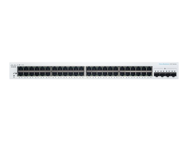 Produktbeskrivning Cisco Business 220 Series CBS220-48T-4X - switch - 48 portar - smart - rackmonterbar Typ av enhet Switch - 48 portar - smart Modell Rackmonterbar Undertyp Gigabit Ethernet Portar 48 x 10/100/1000 + 4 x 10 Gigabit SFP+ (upplänk) Prestanda Vidarebefordransprestanda (64 bytes paketstorlek): 130,94 Mpps