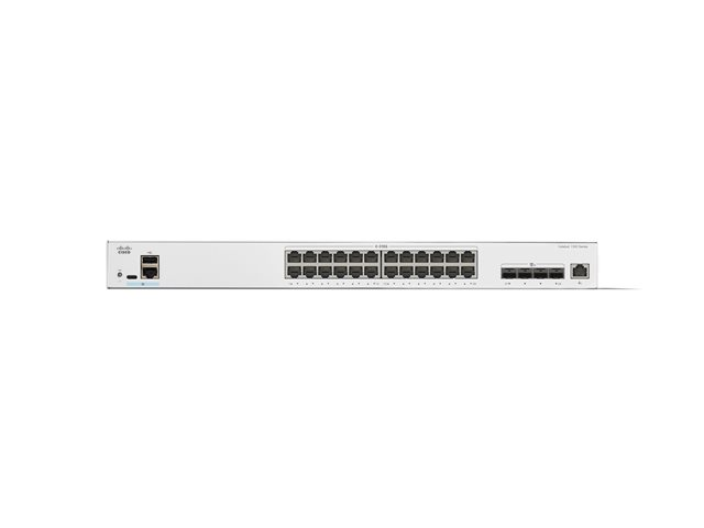 Produktbeskrivning Cisco Catalyst 1300-24XT - switch - 24 portar - smart - rackmonterbar Typ av enhet Switch - 24 portar - L3 - smart Modell Rackmonterbar Undertyp 10 Gigabit Ethernet Portar 24 x 10 Gigabit Ethernet + 4 x combo 10 Gigabit SFP+/RJ-45 Prestanda Vidarebefordringshastighet (paket med 64 bytes): 357,12 Mpps