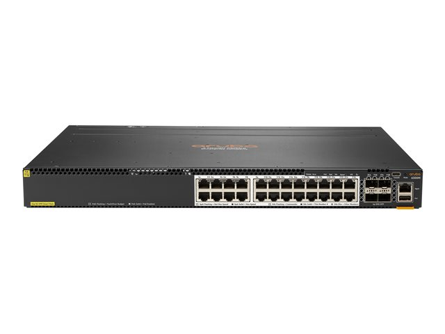 Produktbeskrivning HPE Aruba 6300M - switch - 24 portar - Administrerad - rackmonterbar Typ av enhet Switch - 24 portar - L3 - Administrerad - staplingsbar Modell Framsidan och sida till baksidan rackmonterbar 1U Undertyp Gigabit Ethernet Portar 24 x 1/2.5/5/10GBase-T + 4 x 1 Gb/10 Gb/25 Gb/50 Gb SFP56 (upplänk/stapling) PoE (Power Over Ethernet) PoE+ PoE-budget 1440 W Prestanda Växlingskapacitet: 640 Gbps