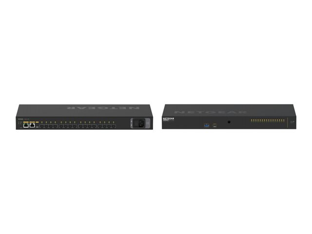 Produktbeskrivning NETGEAR AV Line M4250-16XF - switch - 16 portar - Administrerad - rackmonterbar Typ av enhet Switch - 16 portar - L3 - Administrerad Modell Sida till sida luftflöde rackmonterbar 1U Undertyp 10 Gigabit Ethernet Portar 16 x 10 Gigabit SFP+ Prestanda Växlingskapacitet: 320 Gbps