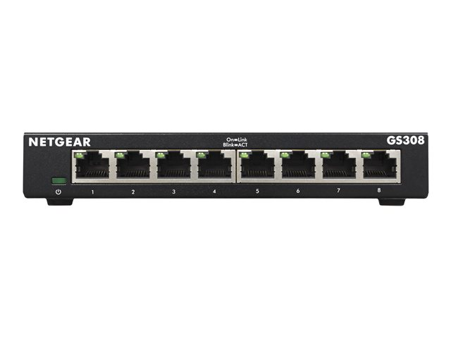 Produktbeskrivning NETGEAR GS308v3 - switch - 8 portar - ohanterad Typ av enhet Switch - 8 portar - ohanterad Undertyp Gigabit Ethernet Portar 8 x 10/100/1000 MAC Address Table Size 4K poster Funktioner Auto-uplink (auto MDI/MDI-X), auto-negotiation, 1,5 MB paketbuffert, fläktlös, Energy Efficient Ethernet, Green Ethernet, uttag för säkerhetslås (kabellås säljs separat), flödeskontroll Standarder som följs IEEE 802.3az, IEEE 802.3ab, IEEE 802.3u, IEEE 802.3i, IEEE 802.3x Dimensioner (BxDxH) 15.8 cm x 10.2 cm x 2.6 cm Vikt 400 g -