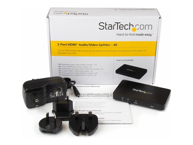 StarTech.com 4K HDMI-video-splitter med 2 portar – 1x2 HDMI-splitter med hölje i solitt aluminium – 4K @ 30 Hz
