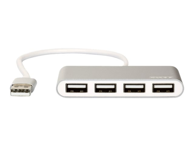 Produktbeskrivning PORT Connect - hubb - 4 portar Typ av enhet Hubb - 4 portar Undertyp USB Portar 4 x USB 2.0 Prestanda Dataöverföringshastighet: 480 Mbps Standarder som följs USB 2.0, USB 1.1 Dimensioner (BxDxH) 7.7 cm x 4.3 cm x 1.2 cm Vikt 54 g Färg Grå Systemkrav Apple MacOS, Linux, Microsoft Windows Tillverkarens garanti 2 års garanti -