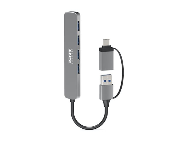 Produktbeskrivning PORT Connect - hubb - USB-C/USB-A - 4 portar Typ av enhet Hubb - 4 portar Undertyp USB Portar 4 x SuperSpeed USB 3.0 Prestanda Maximal datahastighet: upp till 5 Gbps Funktioner Drivs via USB, slank design, aluminiumhus Standarder som följs USB 3.0 Dimensioner (BxDxH) 11 cm x 2 cm x 0.8 cm Vikt 29 g Systemkrav Windows, Apple MacOS Tillverkarens garanti 2 års garanti -