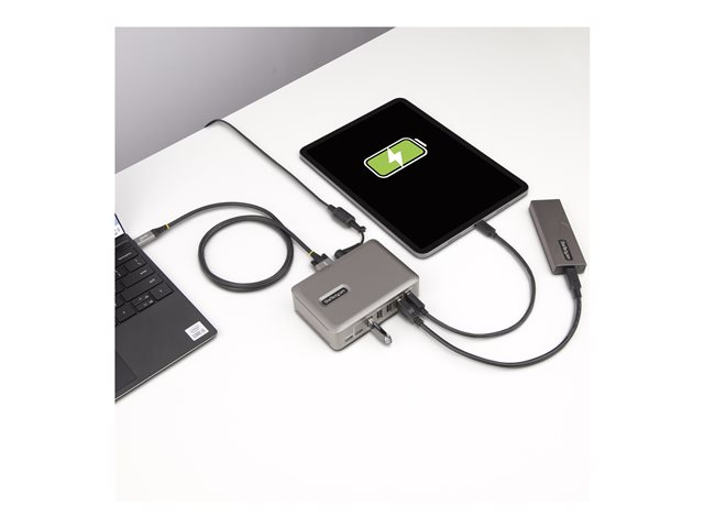 Produktbeskrivning StarTech.com 10-Port USB-C Hub, 8x USB-A + 2x USB-C, Self-Powered w/ 65W Power Supply, USB 3.1 10Gbps Hub w/ BC1.2 Charging, Desktop/Laptop USB Hub with 3ft Locking USB-IF Certified Cable - USB Expansion Hub (10G8A2CS-USB-C-HUB) - hubb - 10 portar Typ av enhet Hubb - 10 portar Undertyp USB Portar 8 x USB 3.2 Gen 2 + 2 x USB-C 3.2 Gen 2 Prestanda Dataöverföringshastighet: 10 GB/s Funktioner Egendrivet läge, stöd för snabbladdning, överspänningsskydd, aktivera för USB, CDP, DCP Standarder som följs Battery Charging 1.2, USB 3.2 Gen 2, USB 3.2 Gen 1, USB 3.1 Gen 2, USB 2.0, USB 1.1 Strömtillförsel AC 110-240 V Dimensioner (BxDxH) 11.5 cm x 8 cm x 3 cm Vikt 287 g Färg Rymdgrå Systemkrav Android, Apple iPadOS, Apple MacOS, Google Chrome OS, Microsoft Windows Lokalisering Europa, Nordamerika, Storbritannien Tillverkarens garanti 2 års garanti -