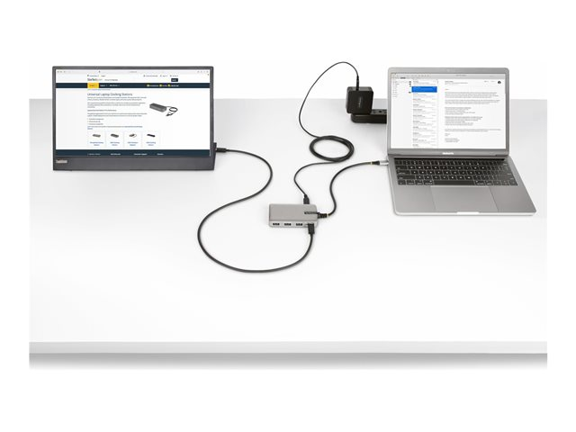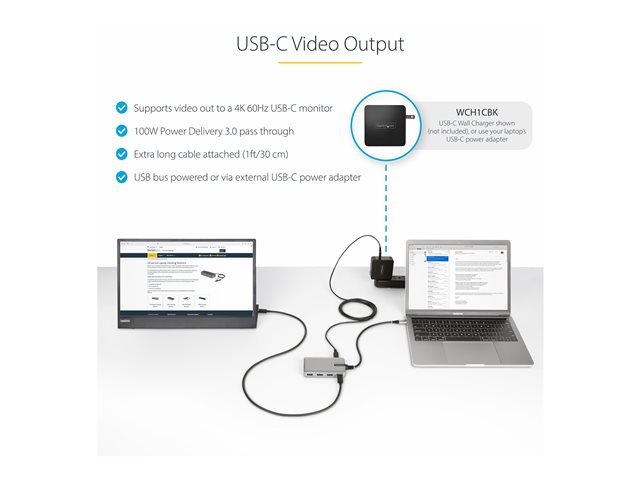 Produktbeskrivning StarTech.com 4-Port USB-C Hub with USB-C DP Alt Mode Video Output 4K 60Hz, 3x USB-A, 1x USB-C, 100W Power Delivery Pass-Through, USB 3.2 Gen 2 (10Gbps), Portable USB Type-C to USB Type-A/C - 1ft (30cm) Host Cable (HB31C3A1CDPPD3) - hubb - 4 portar Typ av enhet Hubb - 4 portar Undertyp USB Portar 1 x USB-C + 3 x USB 3.2 Gen 2 Funktioner DisplayPort alternativt läge, USB-kraftleverans (upp till 100 watt), USB Pass-Through, FRS, bussdriven, överspänningsskydd, aktivera för USB, 4 K upplösningssupport, plasthölje Standarder som följs USB 1.1, USB 2.0, USB 3.0, USB 3.1 Gen 2, USB 3.2 Gen 2, Power Delivery 3.0 Dimensioner (BxDxH) 9.8 cm x 5.4 cm x 1.6 cm Vikt 98 g Färg Rymdgrå Systemkrav Windows, Apple MacOS, Google Chrome OS, Apple iPadOS, Android Tillverkarens garanti 2 års garanti -